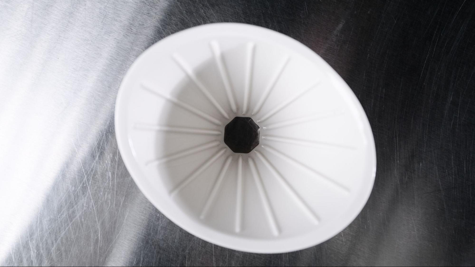 Внутри воронки есть горизонтальные рёбра, которые создают между бумажным фильтром воздушные каналы, что помогает извлечь из кофе больше вкусоароматических веществ. Для такой воронки подойдут классические фильтры как для V60 на 1–4 чашки.