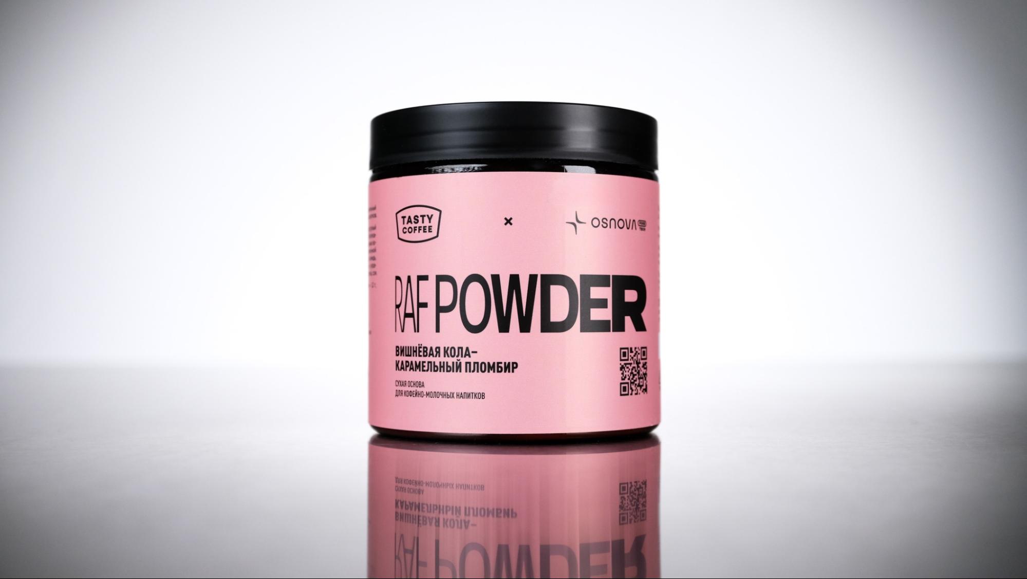 RAF POWDER — это сухая основа, с помощью которой можно приготовить разные кофейные напитки с молоком. При этом никакие другие ингредиенты не потребуются — только молоко, эспрессо и основа RAF POWDER. Раньше основа готовилась на базе кокосовых сливок, а сейчас их заменили на более функциональные (пребиотик) и менее калорийные пищевые волокна, а также снизили содержания жиров. Кроме того, уменьшили содержание сахара, благодаря чему снизилась калорийность и улучшилась растворимость, теперь основа быстро растворяется даже в холодной жидкости.