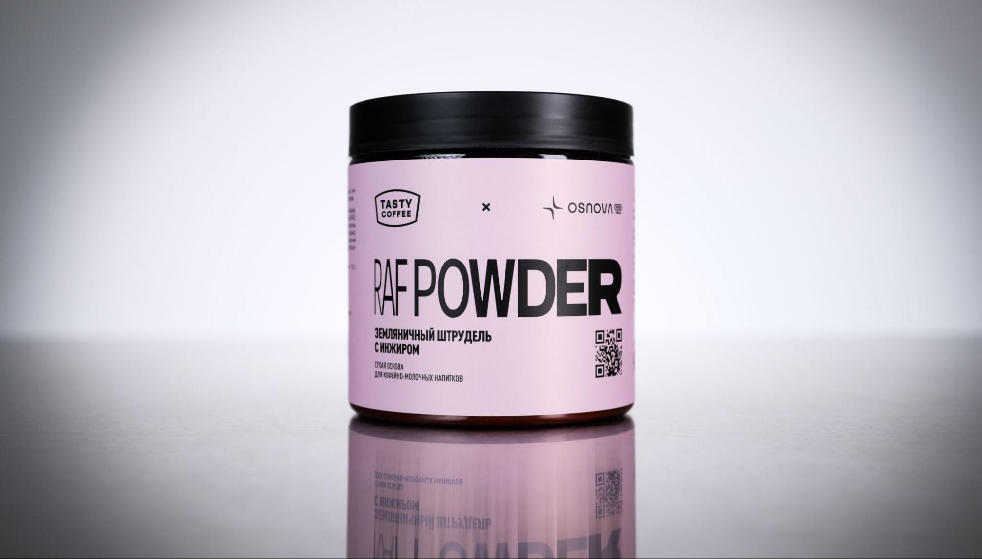 RAF POWDER — это сухая основа, с помощью которой можно приготовить разные кофейные напитки с молоком. При этом никакие другие ингредиенты не потребуются — только молоко, эспрессо и основа RAF POWDER. Раньше основа готовилась на базе кокосовых сливок, а сейчас их заменили на более функциональные (пребиотик) и менее калорийные пищевые волокна, а также снизили содержания жиров. Кроме того, уменьшили содержание сахара, благодаря чему снизилась калорийность и улучшилась растворимость, теперь основа быстро растворяется даже в холодной жидкости.