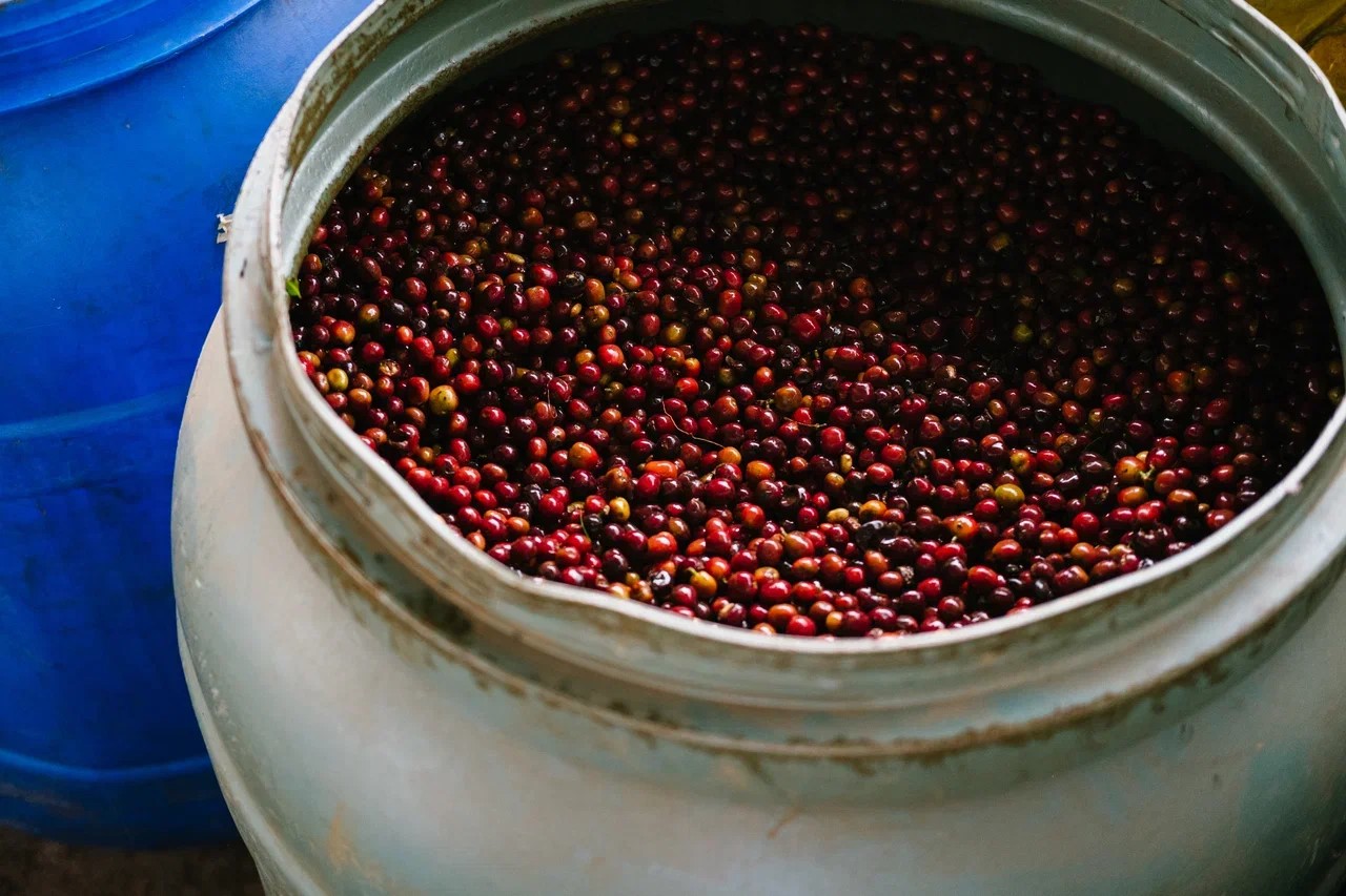 После сортировки этот кофе поместили в пластиковые бочки на три дня для анаэробной ферментации, а затем отправили сушить на африканские кровати в течение четырёх недель.