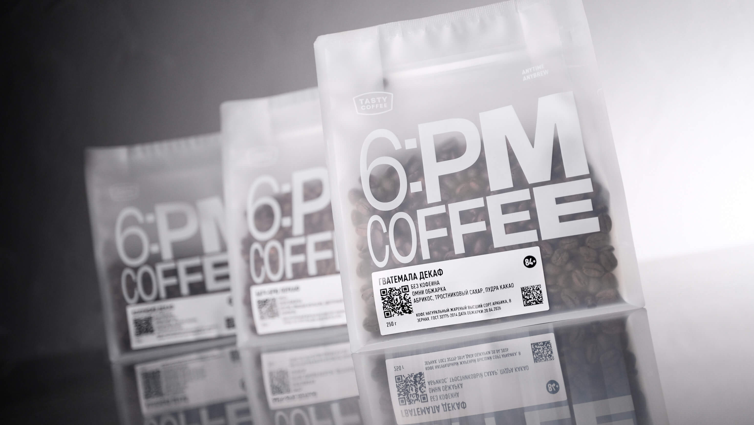 Декафы и лоукафы из 6:PM Coffee можно пить в любое время дня и даже вечером — после 18:00, или 6 p.m., когда многим уже некомфортно пить обычный кофе из‑за кофеина. Название линейки отсылает к тому, что чашка декафа или лоукафа вечером не должна мешать хорошему сну, а в поддержку этой идеи мы даже выпустили шёлковые маски для сна.